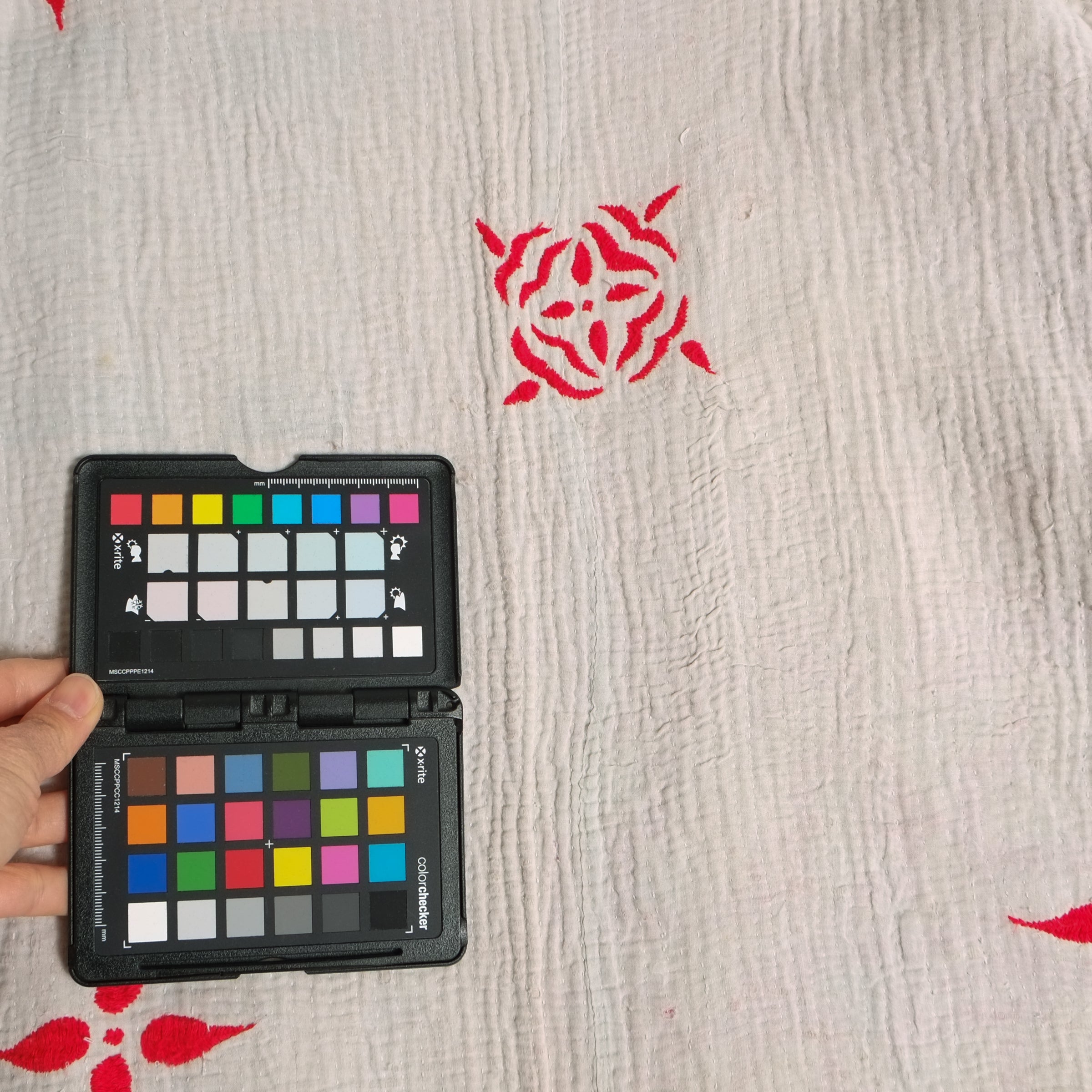 XL Anoushka Jacket LL215– Reversible, Gender-Neutral – White with Red Floral Embroidery