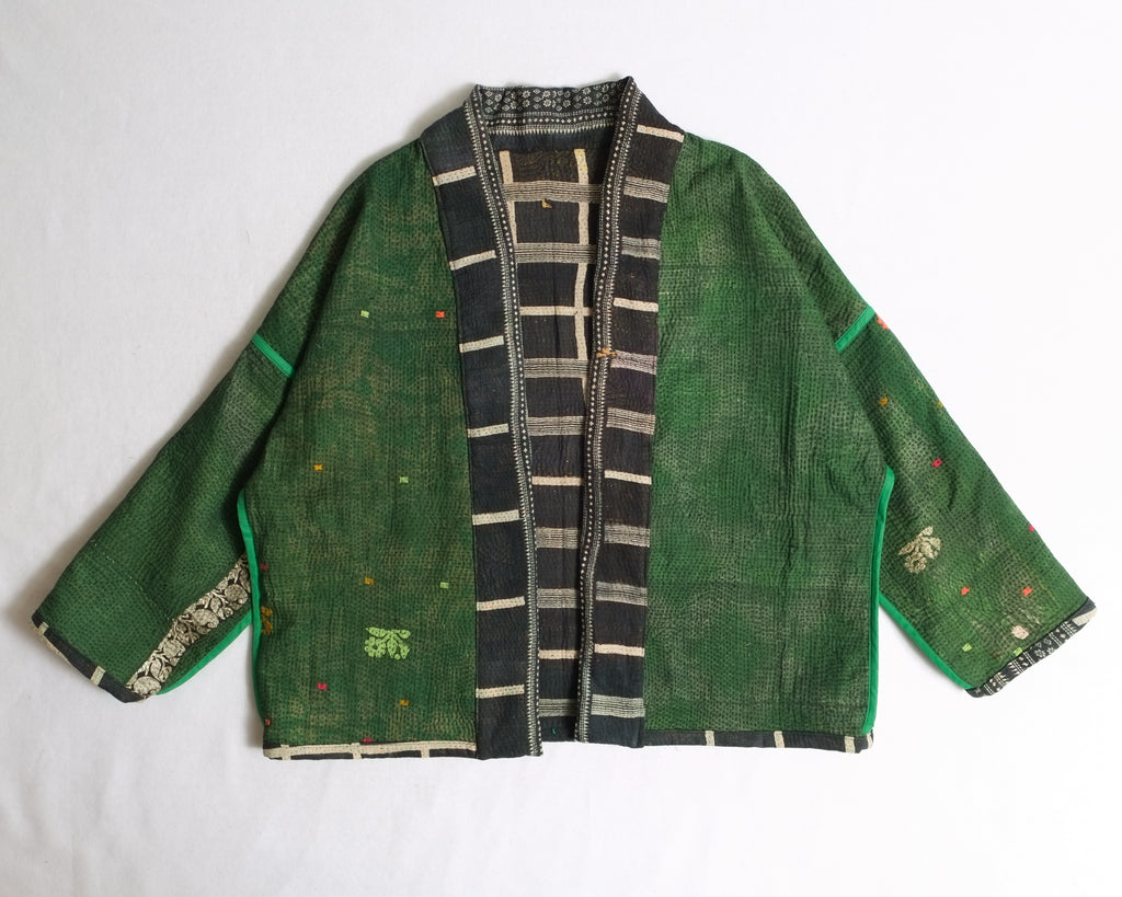Made from traditional Bengali Kantha quilts, repurposed from vintage saris and fabrics, each Anoushka Jacket is a unique, reversible creation designed for comfort and style. The oversized kimono silhouette, inspired by Asian street style, features large pockets for essentials like your phone, wallet, or snacks.