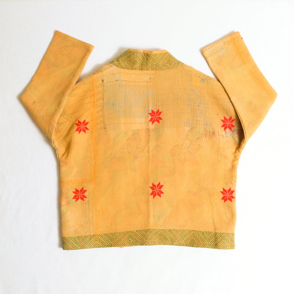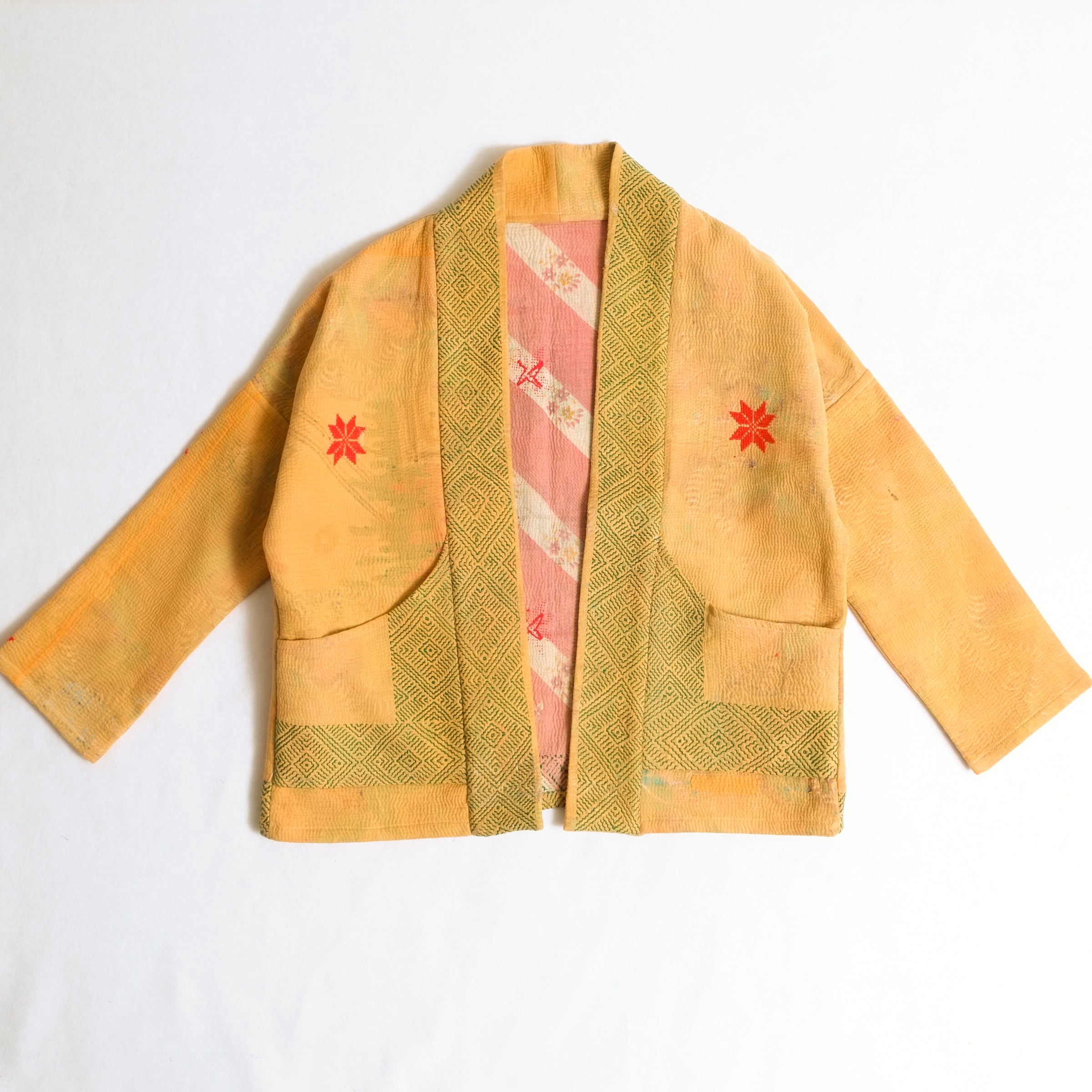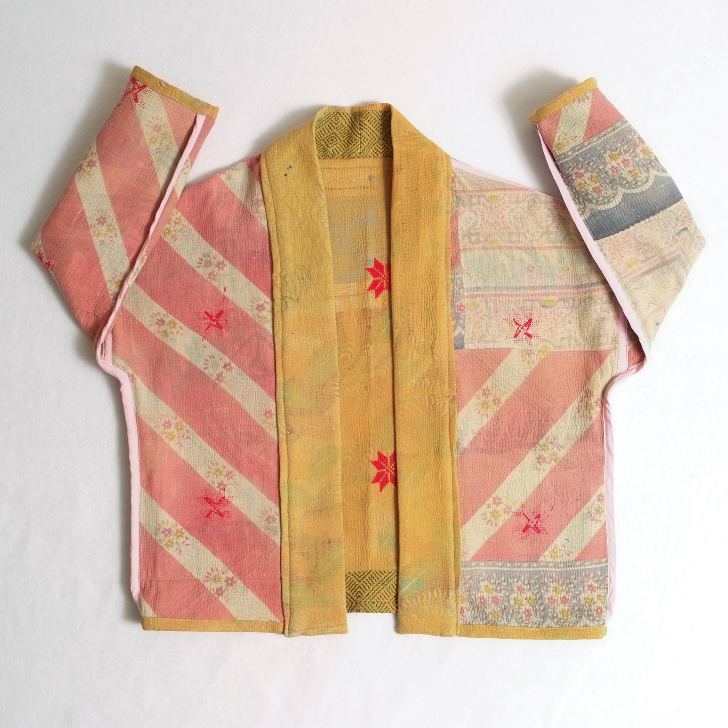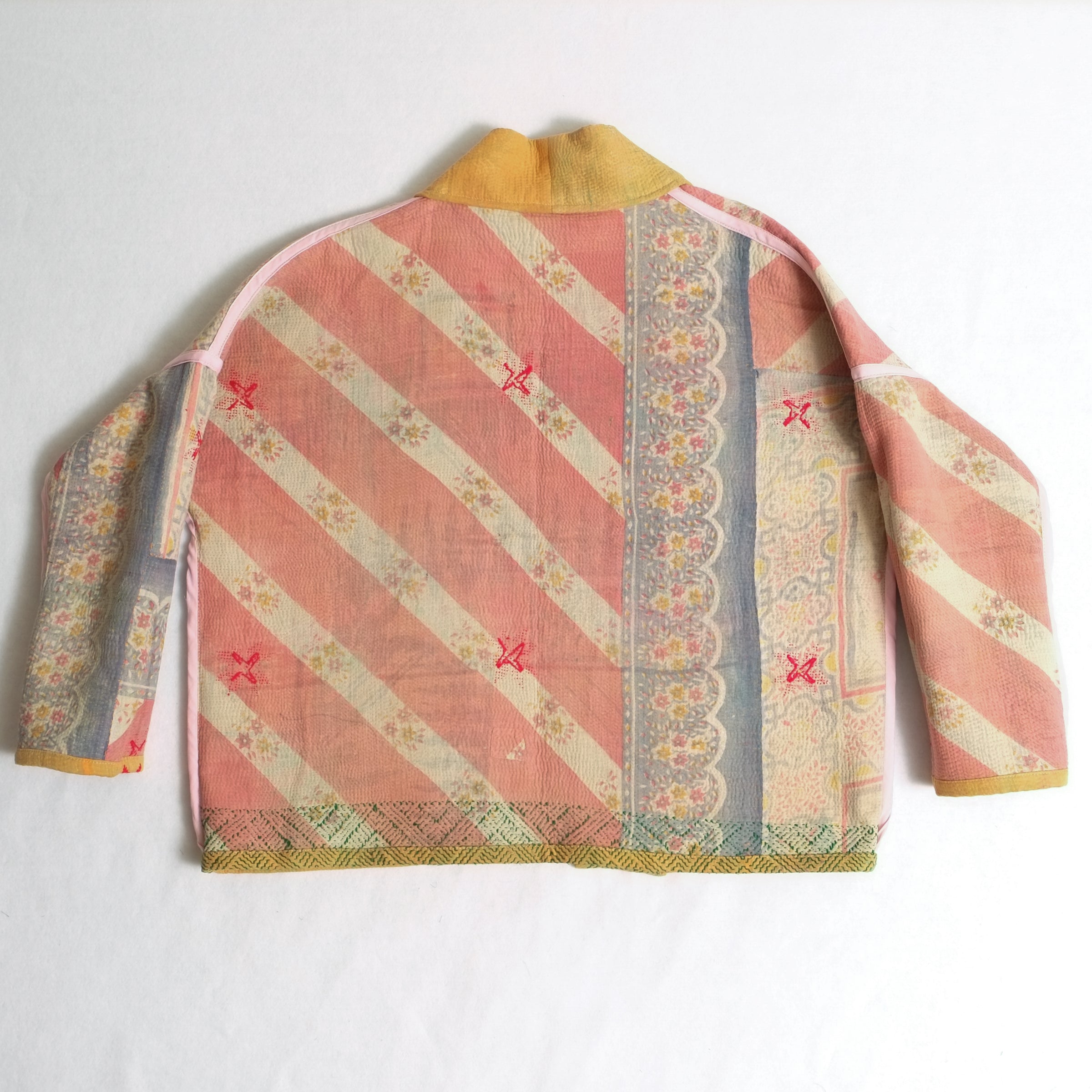 Made from traditional Bengali Kantha quilts, repurposed from vintage saris and fabrics, each Anoushka Jacket is a unique, reversible creation designed for comfort and style. The oversized kimono silhouette, inspired by Asian street style, features large pockets for essentials like your phone, wallet, or snacks.