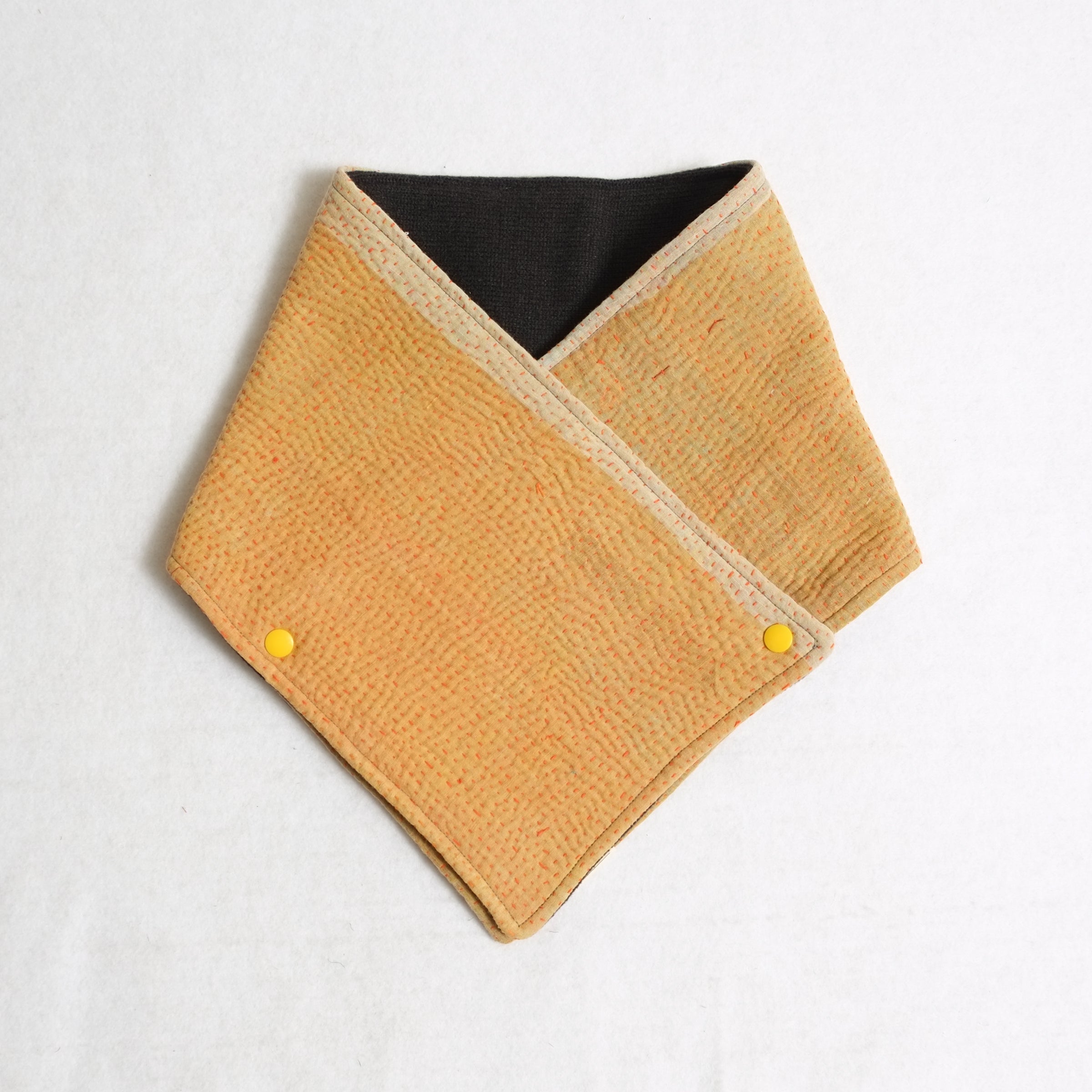This cozy Cowl Neck Warmer is made from the remnants from the production of our Anoushka and Norah jackets which are made from kanthas and lined with recycled Polartec fleece. Kanthas are quilts traditionally from the Bengali region made from old saris or other discarded cloth with a running stitch. Every piece is unique and may contain naturally distressed fabric, holes or patches. It is part of their character and charm.