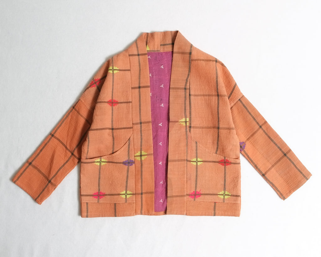 L Anoushka Jacket LS074 – Handmade Reversible Kantha Jacket – Purple with Gold Flecks