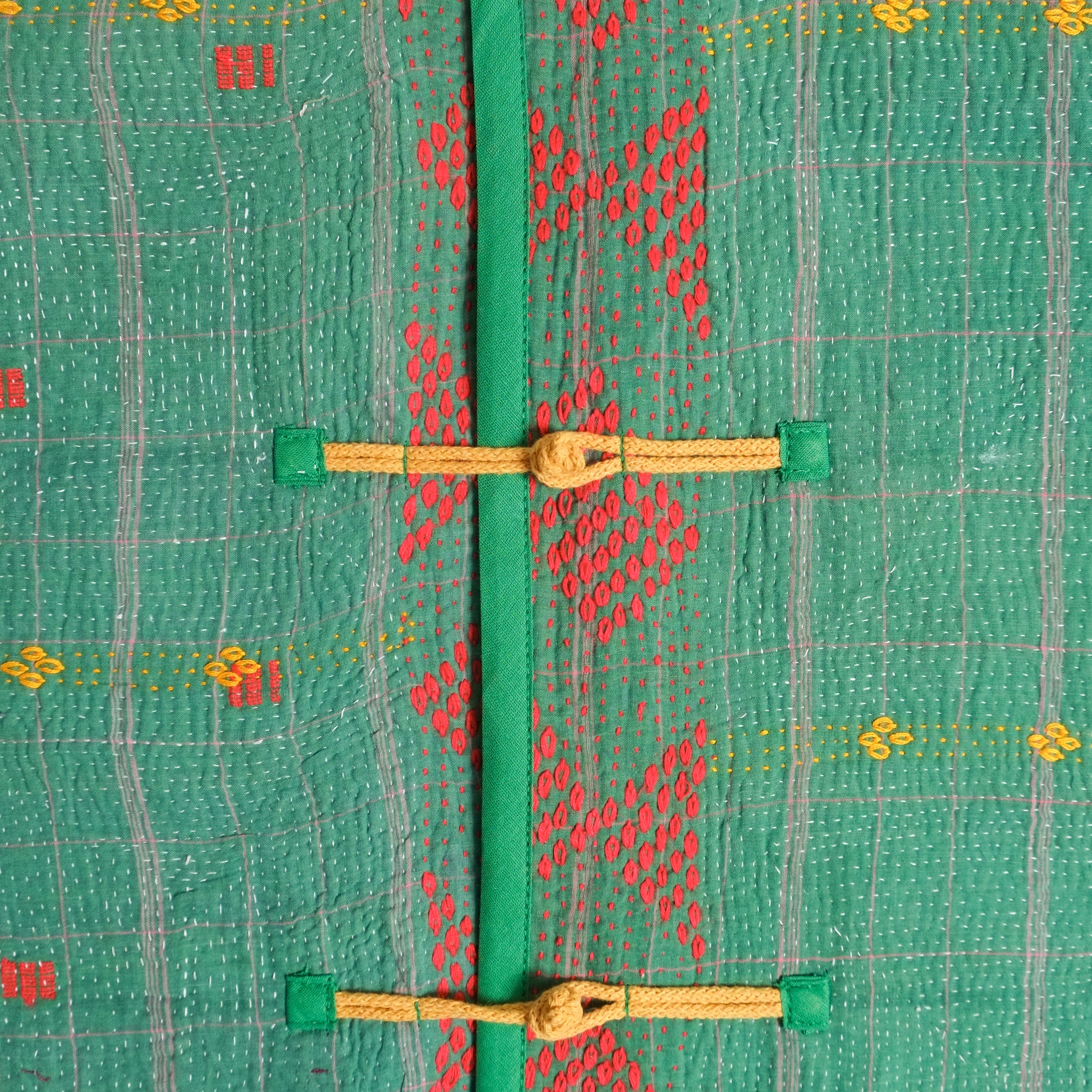 Qiu Vest XXL007 – Handmade Kantha Vest – Purple with Red Chinese Frog Buttons