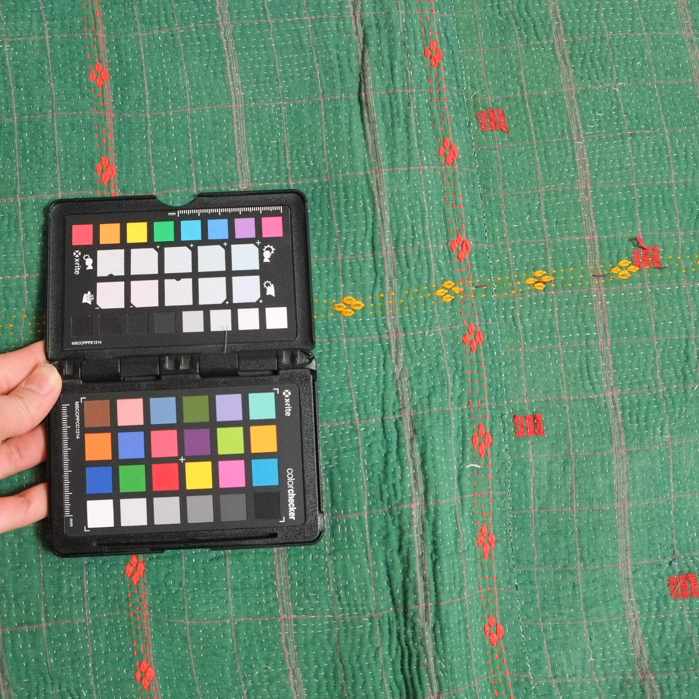 Main: vintage cotton. Because the fabric is vintage, exact content is not known. Binding: 100% cotton.