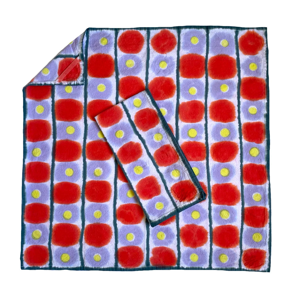 Hand painted with Procion dyes that are fiber reactive and permanently bonded to the material, they won’t bleed or run in the wash.