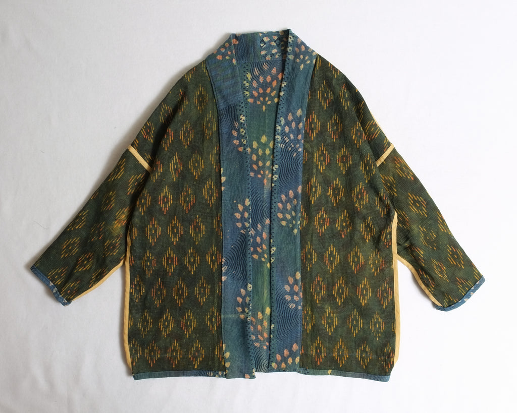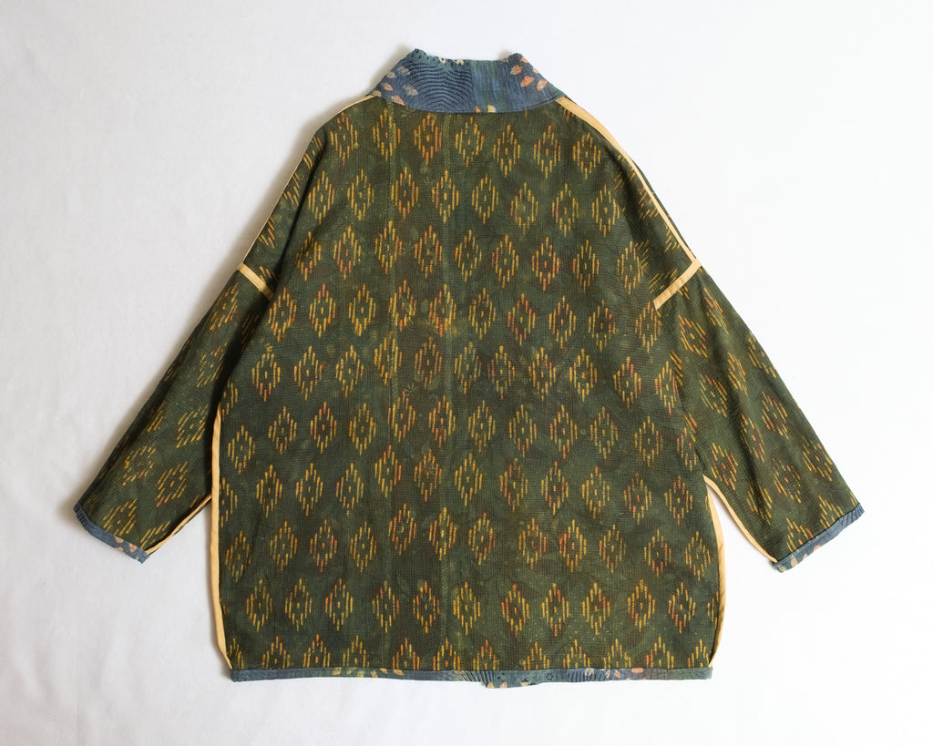 Made from vintage indigo-dyed Kantha quilts, traditional textiles from the Bengali region, each Norah Jacket is a one-of-a-kind, reversible creation designed for comfort and timeless style. The oversized kimono silhouette, inspired by Asian street style, features large pockets for essentials like your phone, wallet, or snacks. Subtle signs of wear, patches, or discolorations are part of each jacket’s vintage charm, reflecting its story and authenticity.